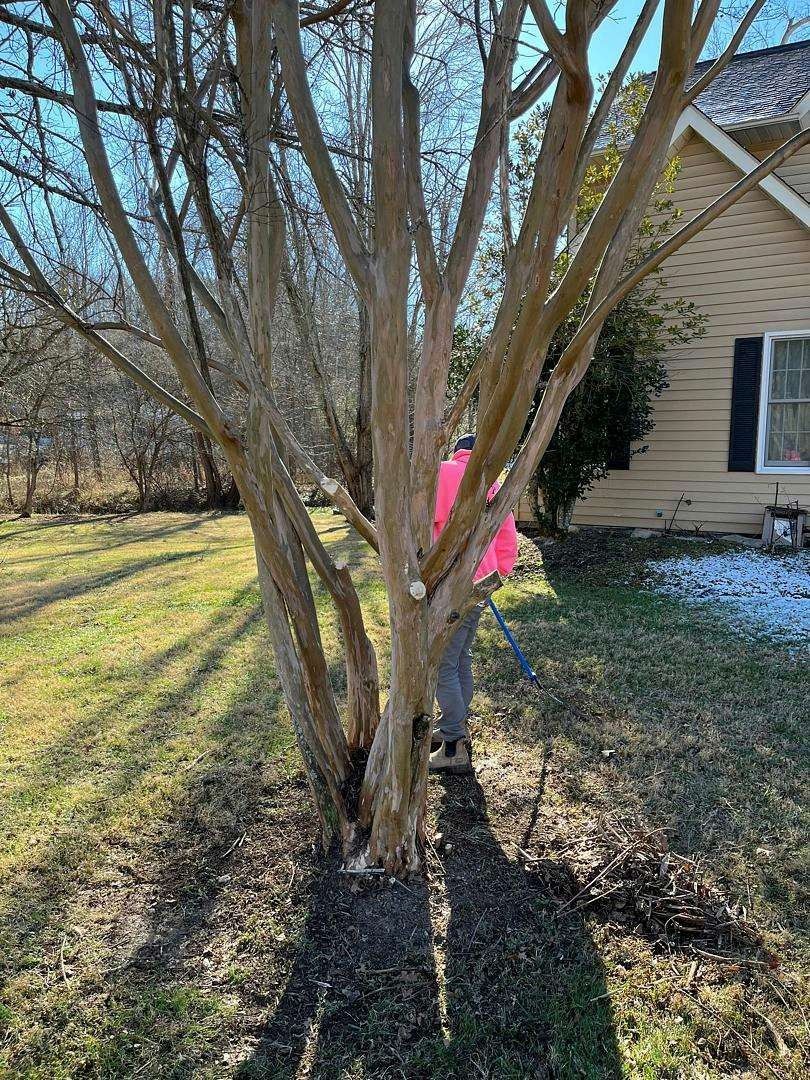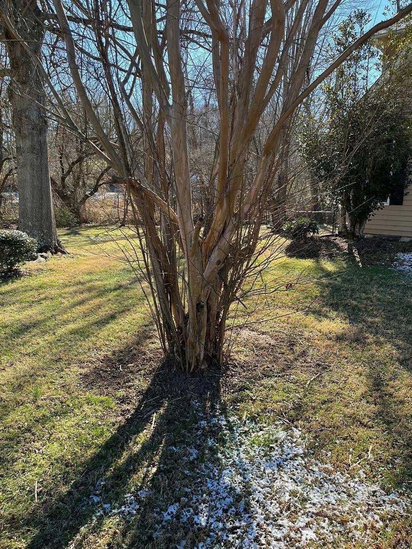 Here is an example of a Johnson CIty home owner before an after picture. Out team was able to prune this Crepe Myrtle and take away the debris greatly improving the look of the property. That wasn’t even everything they got done in this visit.